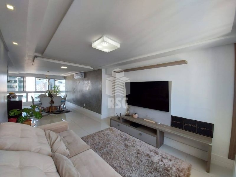 Amplo apartamento 3 suítes sendo 1 master com banheira de hidromassagem para casal, mobiliado, living com cozinha e sacada integrada, churrasqueira com grelha automatizada, lavanderia, lavabo, aquecimento de água a gás, ar condicionado nos quartos, piso dos banheiros aquecidos, espera para automação central, 3 vagas de garagem, box de praia.